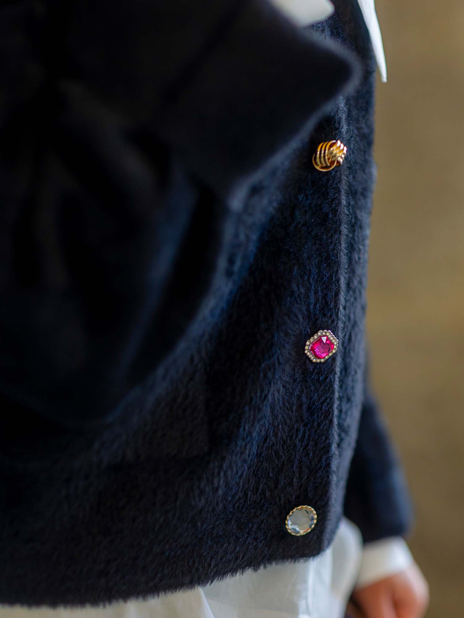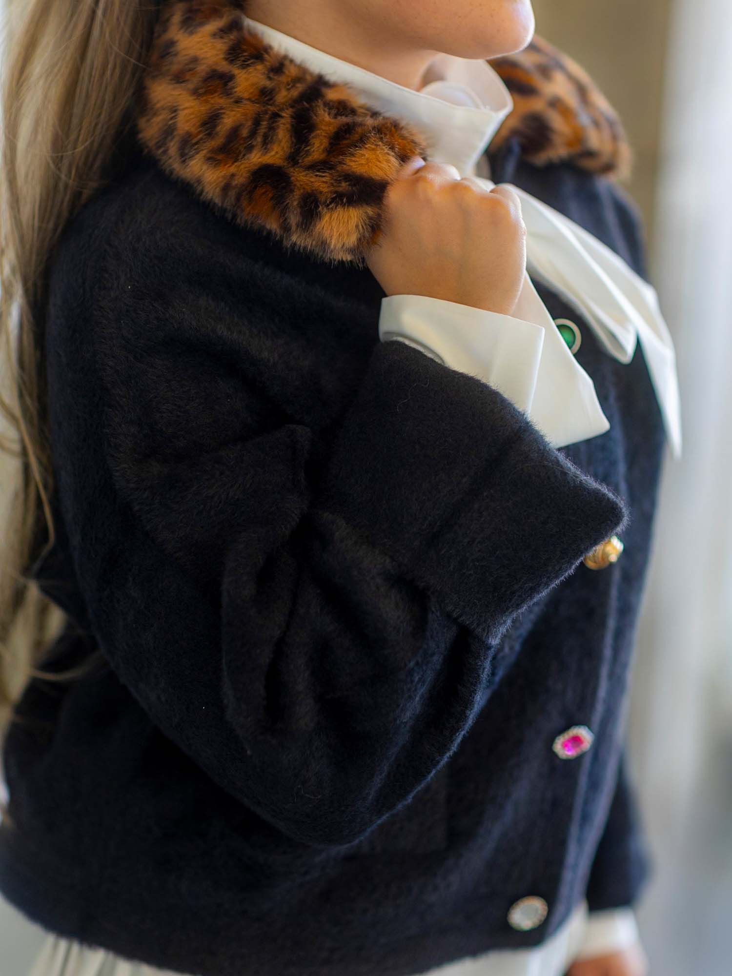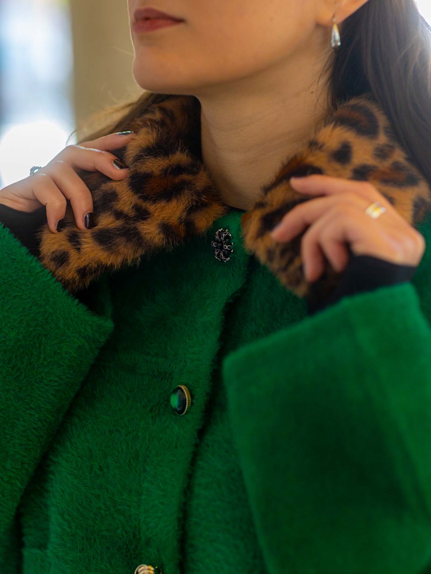 Essentiel Antwerp: Der Cardigan mit Akzent hat eine lockere Passform. Er ist mit verspielten unterschiedlichen Knöpfen versehen und hat zwei aufgesetzte Taschen. Er verbindet verspielten Charme mit alltäglichem Komfort. Das herausragende Merkmal? Ein abnehmbarer Kunstfellkragen mit Leopardenprint, mit dem du deinen Stil nach Lust und Laune variieren kannst. Perfekt für den Lagen-Look oder als tolles Statement. Mittelschwerer Strick, Lockere Passform, Verschiedene Knöpfe, Aufgesetzte Taschen, Abnehmbarer Kunstfellkragen. Material: 100% Polamide.